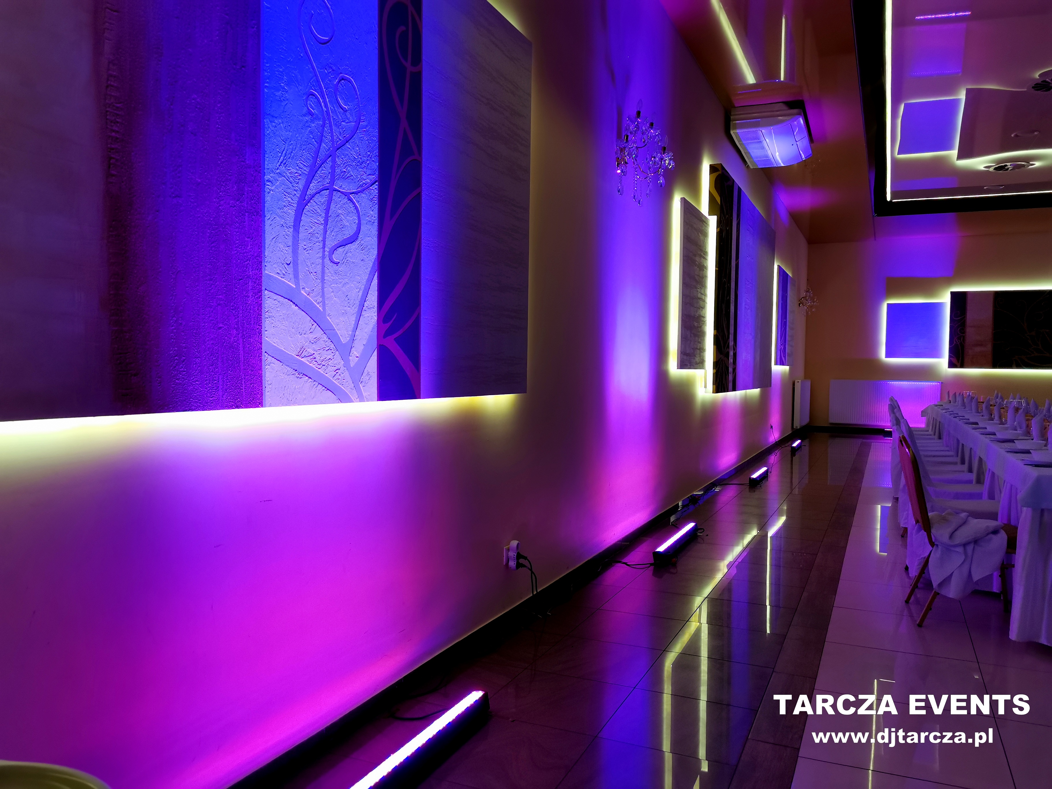 Dekoracja światłem od TARCZA EVENTS zamienia zwykłe wnętrze w elegancką, nastrojową przestrzeń pełną subtelnego blasku.