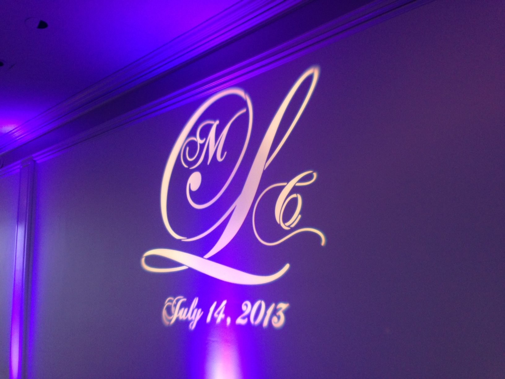 Wasze inicjały, data ślubu lub wyjątkowy symbol wyświetlony na ścianie niczym świetlny hologram.